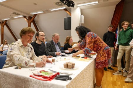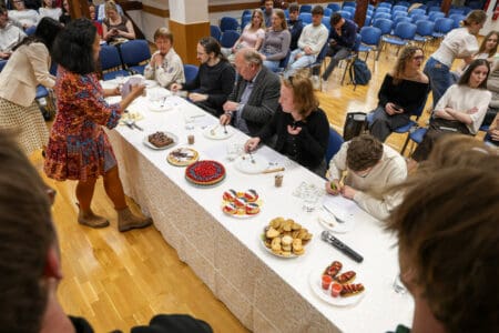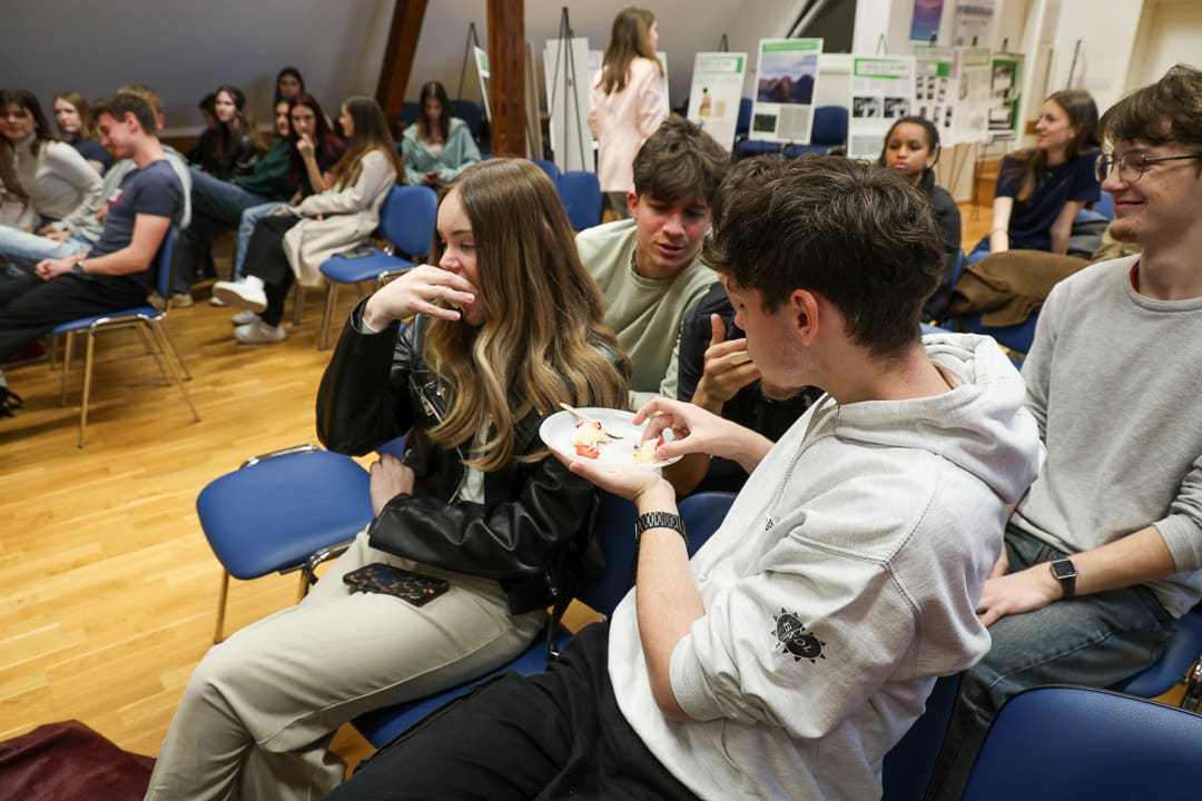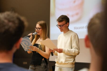 Dijaki, ki se učijo francoščino, so pripravili izvrstne sladice, zato je imela strokovna komisija – ravnatelj dr. Anton Šepetavc, profesorica Alenka Jeromel, profesor Žan Jerman ter dijaka Maj Valek in Žana Zupanc – res zahtevno nalogo.