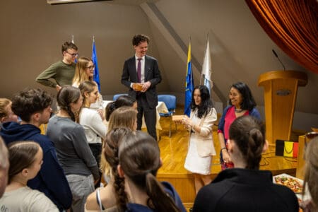 V prijetnem in sproščenem vzdušju smo srečanje zaključili s pokušino pristnih belgijskih pralinejev, ki nam jih je podarilo veleposlaništvo.